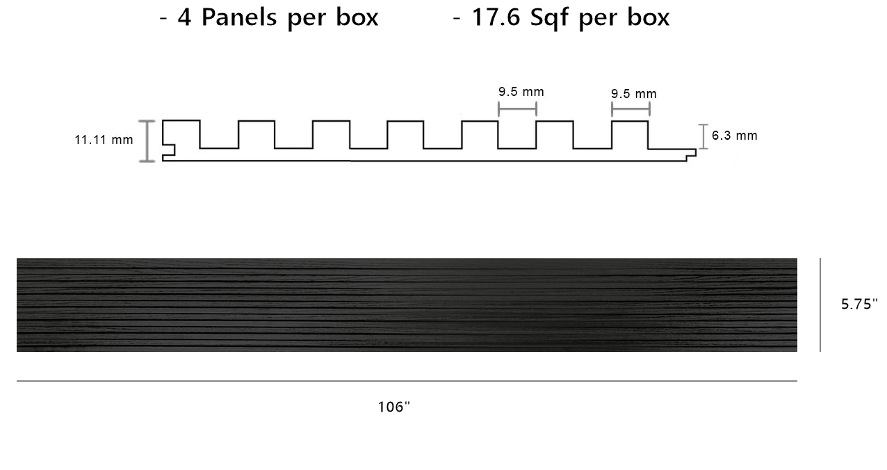 4 panels per box measuring 106" x 6". These panels can cover up to 17.6 square feet space and will join next to each seamlessly with no join line showing.